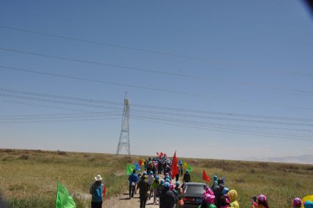 中午13:00,徒步越野活动在运动员进行曲中在正式开始,参加活动的218名运动员顶着烈阳、朝气蓬勃踏上征途。此次活动从109国道往金属镁大道7.5公里处(马步芳公路)作为起点,终点到达民建会员企业五子湖万只羊养殖基地,路程全长21公里。