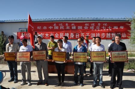 为纪念中国民主建国会成立70周年,8月8日民建格尔木支部和格尔木市文体广电局联合举办的“五子湖徒步越野”活动。