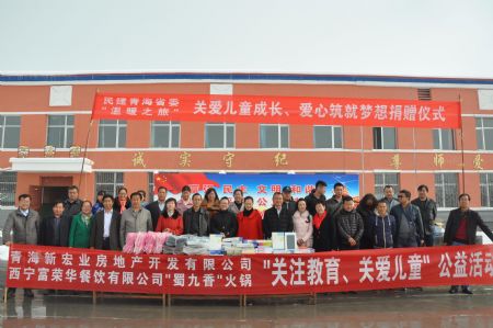 2015年10月31日,民建青海省委在“社会服务基地”互助县威远镇小寺小学举行 “温暖之旅”——关爱儿童成长、爱心筑就梦想捐赠活动。民建青海省委主委王舰,副主委王建民,办公室主任李国翠,民建会员企业家青海新宏业房地产开发有限公司、西宁富荣华餐饮有限公司财务总监阿兰,爱心人士西宁富荣华餐饮有限公司总经理文麒以及海东市教育局局长焦环玉,互助县政协副主席赵元玺,小寺小学全体老师参加了此次活动。