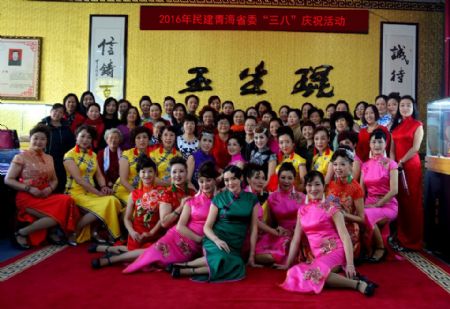 3月4日下午,来自民建省委省直各支部、民建西宁市委的四十余名女会员在城北生物园区青海玉生琨商贸有限责任公司欢度了二零一六年民建青海省委“三八”国际妇女节庆祝活动。活动由民建妇委会统筹安排,归为阳光女人系列活动之八。此次庆祝活动以旗袍服装展示为主题,由省直综合五支部会员金朝晖带领的“东方美韵”队及省直综合六支部会员刘晓燕带领的“旗袍雅韵”队为大家演出。整场活动除旗袍服装演出外,还有统战系统及民建知识问答环节,会员们踊跃参与,积极作答,在这种寓教于乐的过程中进一步增进了对统战、对民建的认识。