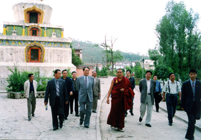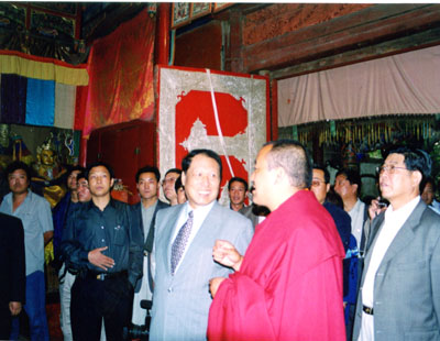 2001年8月16日民建中央主席成思危参观青海省塔尔寺