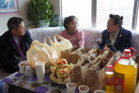 2017年1月12日,民建青海省委副主委王建民带领社会服务部工作人员和会员企业青海珠峰虫草药业集团有限公司领导等一行赴湟源县再次看望白血病女孩张馨妍。