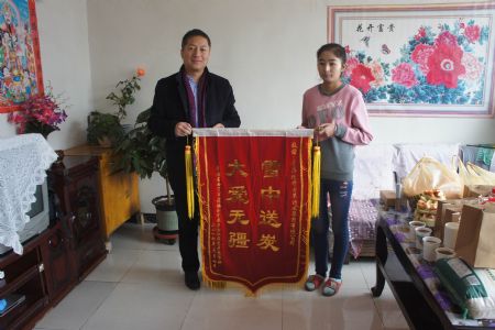 王建民副主委还与馨妍进行了亲切的交谈,鼓励她一定要更加乐观、坚强的面对生活,馨妍妈妈对民建青海省委和青海珠峰集团及爱心人士的无私帮助表达了最诚挚的感谢,还给青海珠峰虫草集团有限公司赠送了锦旗,表达由衷的谢意。馨妍也几次落泪,说最大的愿望就是再次回到校园,王建民主委也表示在馨妍身体允许的情况下,民建青海省委会与相关部门联系,协调张馨妍上学事宜,帮助张馨妍完成重返校园的梦!