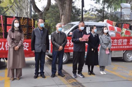 捐赠仪式上,王舰主委代表民建青海省委向阿兰的爱心善举表示真诚的谢意和崇高的敬意,他表示,青海民建踊跃投身这场疫情阻击战,与平安区各族群众万众一心,共克时艰,正以实际行动践行着中国特色社会主义参政党的使命担当,诠释着民主党派是中国共产党好参谋、好帮手、好同事。坚信在省委省政府的坚强领导下,在全社会干部群众的共同努力下,我们一定能够战胜疫情。