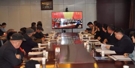 与会同志首先观看了中共中央总书记、国家主席、中央军委主席习近平出席中国文联第十一次、中国作家协会第十次全国代表大会并发表重要讲话视频。
