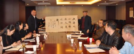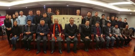 会员书法家陈墨向省委会赠送了内容为“与党同心同德,与人民同心同向”的书法作品。与会同志合影留念。