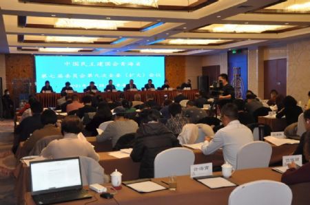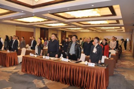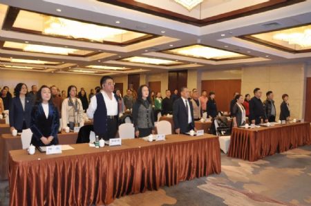 大会在雄壮的国歌声中开幕;王发昌带领与会同志集体学习了民建中央十一届五次全会精神。
