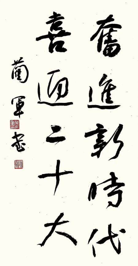 编者按:为迎接即将召开的中国共产党第二十次全国代表大会,营造良好舆论氛围,唱响时代主旋律,继续扎实开展好“矢志不渝跟党走,携手奋进新时代”主题教育活动,引导全体民建会员坚定理想信念、立足本职建功立业,以优异成绩迎接党的二十大胜利召开,民建青海省委微信公众平台、网站将从即日起开设“奋进新时代•喜迎二十大”专栏,将陆续刊发优秀征文、经典诵读、主题演讲、网络书画展、爱国曲目演奏等等系列栏目。今天分享的是由民建西宁市委城中二支部会员蔺军带来的书法作品。