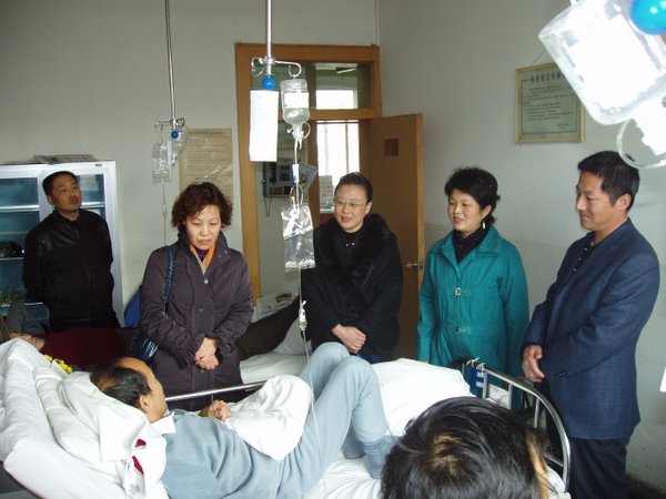 11月9日中午,民建青海省委副秘书长王建民、组织部副部长李小燕、办公室副主任何晓军、助理调研员魏亚琴等,带着鲜花和礼品到青海省交通医院看望了生病住院的原秘书长袁善增同志。