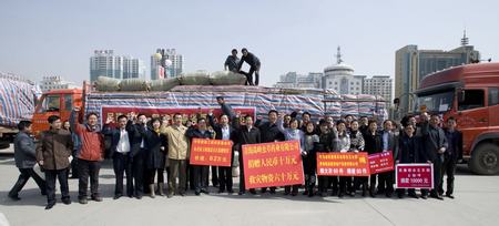 在捐赠仪式的最后,大家以热烈的掌声欢送赴灾区救助组,将在场每一位热心人士的温暖带到灾区,大家高呼“玉树,加油!玉树,加油!”,目送渐行远去的7辆车队,默默祈福……
