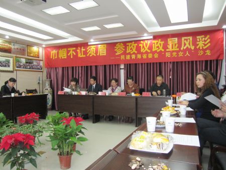 为创新妇委会参政议政工作方式、探索适合女性特点的有效工作途径,2011年11月19日下午,民建青海省委妇委会在金尔瑞实业有限公司所在的工商宾馆八楼会议室举办了“巾帼不让须眉,参政议政显风采”为主题的沙龙。