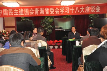 2012年11月8日上午10:40,中共十八大开幕式、胡锦涛总书记作完工作报告后,民建青海省委组织部分会员代表及省委会机关干部50余人,在西宁市东湖宾馆四楼会议室就中共十八大开幕式举行座谈会。座谈会现场气氛热烈,大家踊跃发言。
