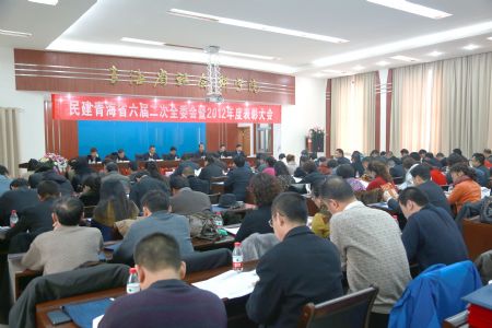 民建青海省第六届委员会第二次全委会暨2012年度表彰大会于1月20日在省社科院会议室召开。中共青海省委统战部常务副部长廖文顺,青海省人民政府副省长、民建青海省委主委高云龙,民建青海省委副主委王舰、王建民、黄梓平、冯可心,民建青海省委常委马林、王发昌、谷晓恒、满开清等领导出席会议。省委委员,西宁市委、省直属各支部共113名会员参加了大会。会议由民建青海省委秘书长谷晓恒主持。大会在雄壮的国歌声中开幕。