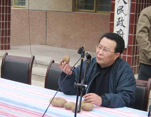 青海省农科院高原马铃薯种子站站长申海峰同志向农民朋友讲解马铃薯种植技术