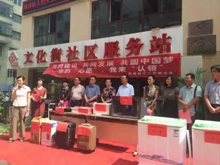 7月18日上午,民建西宁市委城中二支部和饮马街街道党工委,在文化街社区联合举办了以“你的“心愿”、我来“认领”为主题的爱心捐助活动。民建青海省委副主委王建民、民建西宁市委主委满开清、城中区委统战部部长马超英、区政协主席黄建、街道党工委书记付永琪及相关领导参加了捐助仪式。