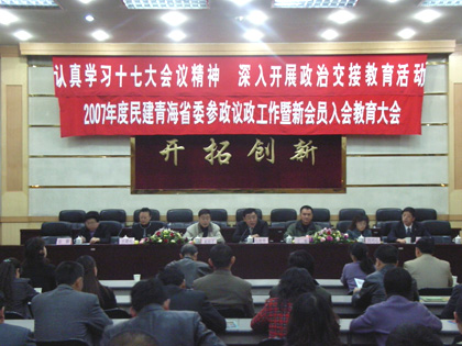 11月11日下午,民建青海省委召开2007年参政议政暨新会员入会教育大会,民建中央副主席、民建青海省委主委马培华,民建青海省委副主委王舰、黄梓平、王建民、冯可心,青海省西宁市政协副主席、民建西宁市委主委张颖等参加了大会。中共青海省委统战部一处副处长童宁西应邀出席了会议。