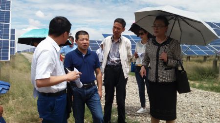 调研组一行首先来到青海明晶共和光伏电站进行实地考察,据介绍青海明晶新能源光伏发电项目位于海南州光伏发电园区内,项目总占地面积1800亩,装机容量50MWp,一期10 MWp已于2015年12月并网发电,一期日发电量达45850kwh,二期于2016年6月并网发电,二期日发电量达31675 kwh。