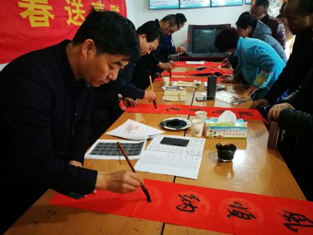 为认真贯彻落实党的十九大精神,并将开展基层服务型党组织创建活动落到实处,2月1日,民建青海省委平安区支部在海东市平安区平安镇东村举办“迎新春、送春联”活动,支部会员书法家李宝明及省、市书法协会的三位书法家现场挥毫泼墨,为广大东村村民免费书写并赠送春联,送上节日的美好祝福。