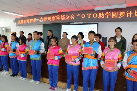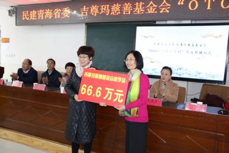 11月10日,民建青海省委、吉尊玛慈善基金会“OTO助学圆梦计划”项目捐赠仪式在互助县一中举行。省政协副秘书长、民建青海省委副主委王建民,中共青海省委统战部一处处长童宁西,海东市教育局副局长潘海春,互助县人大副主任赵元玺,平安区人大副主任范雪莲出席此次活动。深圳吉尊玛慈善基金会秘书长刘红霞,志愿者部部长吴泓,项目部主任王涛,北京师范大学附属实验中学讲师长宋飞及互助、平安、乐都等地受赠学生代表300余人参加了此次活动。活动由海东市政协副主席、民建平安支部主委焦环玉主持。