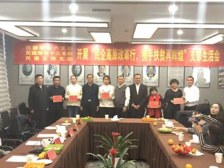 会议由六支部周成金主委主持,民建省委主委王舰、副主委王建民、常委谷晓恒、组织部部长杨慧林及办公室主任李国翠参加了会议。会议以十三支部主委刘光明分享改革开放北京学习感受为契机,回顾了改革开放40年来中华大地的巨大变化,深深触动了与会人员;六支部主委周成金深情感怀金尔瑞风雨40年的艰辛历程,从挑担溜街到铺面搭台、从纽扣买卖到毛衫售卖、从铁箱收款到电子收银、从蝇头小利到返利回馈,既是个人创业艰辛成长的回顾,也是改革开放沧海桑田的历史见证,诚挚感谢党、感谢中央改革开放政策给自己以及企业带来的机遇和挑战,并由此带来的企业大发展和员工生活的巨大改善;互助支部主委赵元玺及六支部会员祁乐平图文并茂的介绍了各自扶贫助残公益事业的开展情况及取得的丰硕成果,充分展示了民建会员企业回馈社会、扶残救助的社会责任,增进了各会员企业间的沟通了解。