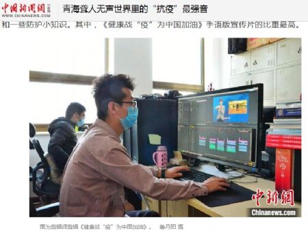 因此,在疫情发生后,袁震带领创作团队,从策划到拍摄,再到制作,连续加班,经过96个小时的奋战,创作出了《健康战“疫” 为中国加油》手语版系列宣传片,并在第一时间免费发送给青海省内十余家电视台和互联网媒体,以及青海省9 个市州的残联和一些窗口单位,希望能用最快、最广泛的途径,让更多聋人看到这组宣传片,和我们一起安全、健康地抗击此次新冠肺炎疫情。