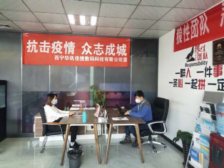 邓博说,西宁华讯佳捷数码科技有限公司在2月3日率先完成了复工。在此之前公司已经通过基于云架构的WeLink远程协同办公系统,员工在家里就参加完成了针对此次疫情不同行业基于云架构的解决方案的培训会,为提早复工打下了坚实的基础。自复工以来公司除在外地未回青者全员上班共计19人。员工连续数日加班加点,全力以赴,免费为服务单位与群众提供技术服务支持。目前,公司已经对全省几十家政府、事业、企业免费提供数十种针对疫情的系统解决方案。其中包括青海省卫健委、中国铁路青藏集团有限公司、青海消防总队、青海省地理信息中心、西部矿业、黄河水电等单位,还有数十家中小企业、教育机构,受益人群近5万人。