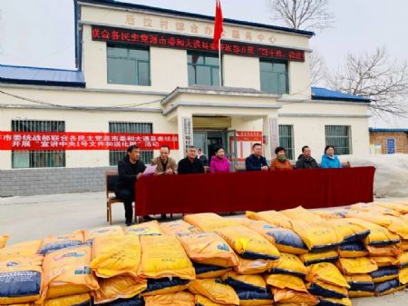 今年是集中力量打赢脱贫攻坚战和全面建成小康社会的关键一年,为全面深入宣传中央和省市委各项强农惠农富农政策,3月初,民建西宁市委选派秘书长陈永忠参加市委统战部“鼓干劲、稳脱贫、迎小康”工作组,在大通县逊让乡上后拉村开展为期一个月的“宣讲中央1号文件”工作。3月26日,民建西宁市委参加了由中共西宁市委统战部牵头、联合各民主党派市委开展的“宣讲中央1号文件和送化肥”活动,为“鼓干劲、稳脱贫、迎小康”工作组所在的逊让乡上后拉村送去化肥21吨。