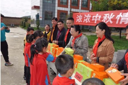 参加活动的领导、老师为孩子们分发了中秋月饼,王建民代表民建青海省委向老师和孩子们送上了节日的祝福。王建民说,广大教师在知识传播的第一线,以智慧育人,为国家和民族的未来播撒种子、积淀力量,展现了新时代教师身上无私奉献的精神和崇高的人格境界。希望广大教师不忘立德树人初心,牢记为国育人使命,更好的点亮孩子的未来。希望孩子们能够树立远大理想,厚植高尚品格、品行、品位,放飞梦想铸就辉煌。同时感谢完美青海分公司多年来用实际行动真心回报社会,为地方教育和发展献爱心,做实事,用爱心筑就梦想。