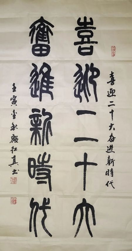 编者按:为迎接即将召开的中国共产党第二十次全国代表大会,营造良好舆论氛围,唱响时代主旋律,继续扎实开展好“矢志不渝跟党走,携手奋进新时代”主题教育活动,引导全体民建会员坚定理想信念、立足本职建功立业,以优异成绩迎接党的二十大胜利召开,民建青海省委微信公众平台、网站将从即日起开设“奋进新时代•喜迎二十大”专栏,将陆续刊发优秀征文、经典诵读、主题演讲、网络书画展、爱国曲目演奏等等系列栏目。今天分享的是由民建西宁市委城中二支部会员殷红其带来的书画作品。