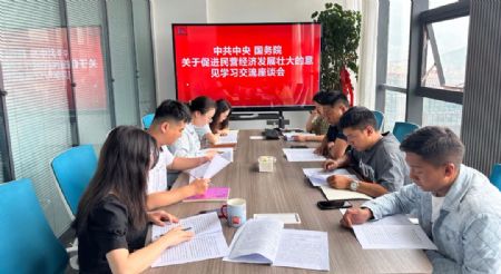 2023年8月4日上午,民建会员企业青海万利工程项目管理有限责任公司召开《中共中央国务院关于促进民营经济发展壮大的意见》学习会。