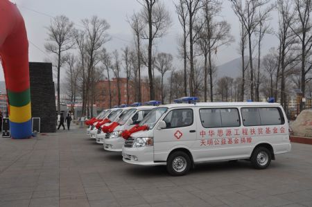 11月22日,中华思源工程扶贫基金会“2013”思源救护中国行”暨思源天明公益基金(青海)救护车捐赠仪式在湟源举行。中共青海省委统战部一处处长童宁西,民建青海省委副主委王舰、冯可心出席捐赠仪式。参加此次活动的还有湟源县县委书记马建立、常务副县长郭健、卫生局局长邹永生以及民建湟源支部的会员。