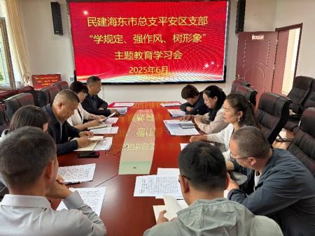 6月5日上午,民建海东市总支平安区支部召开“学规定、强作风、树形象”主题教育学习会议,区人大副主任、支部主委范雪莲参加会议并讲话,支部副主委及部分会员参加会议。